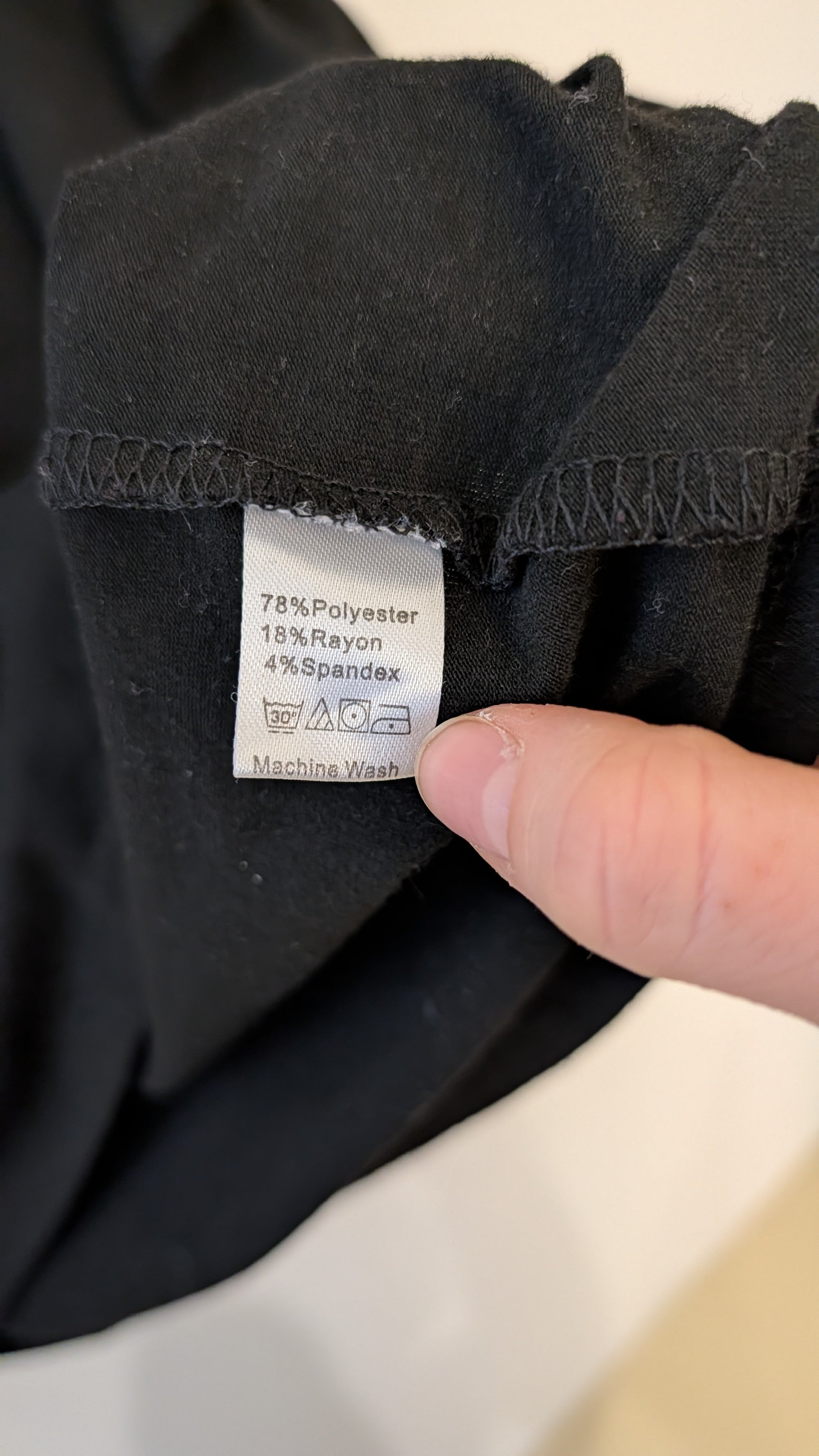Matières : 78% Polyester, 18% Rayonne, 4% Spandex.
