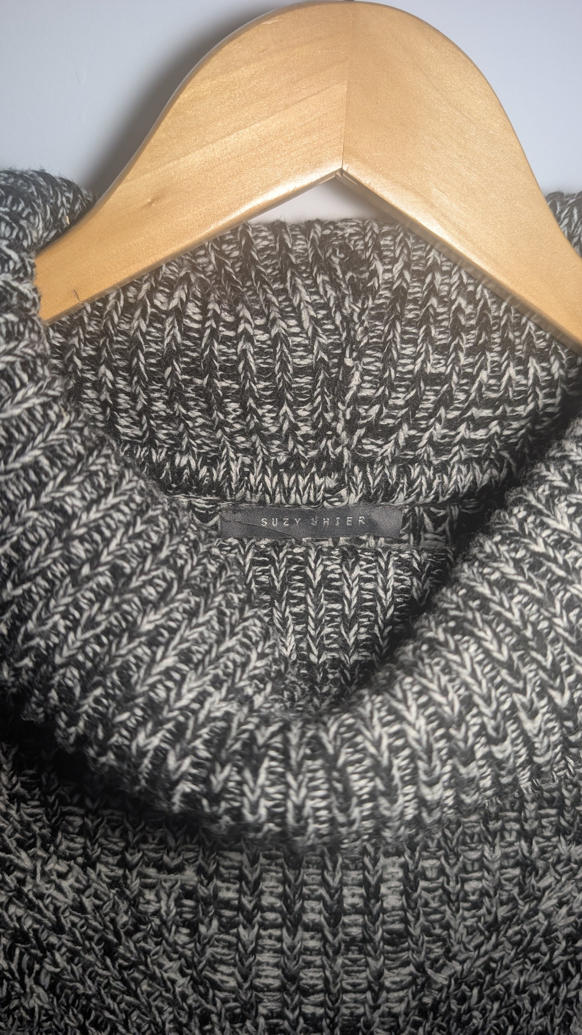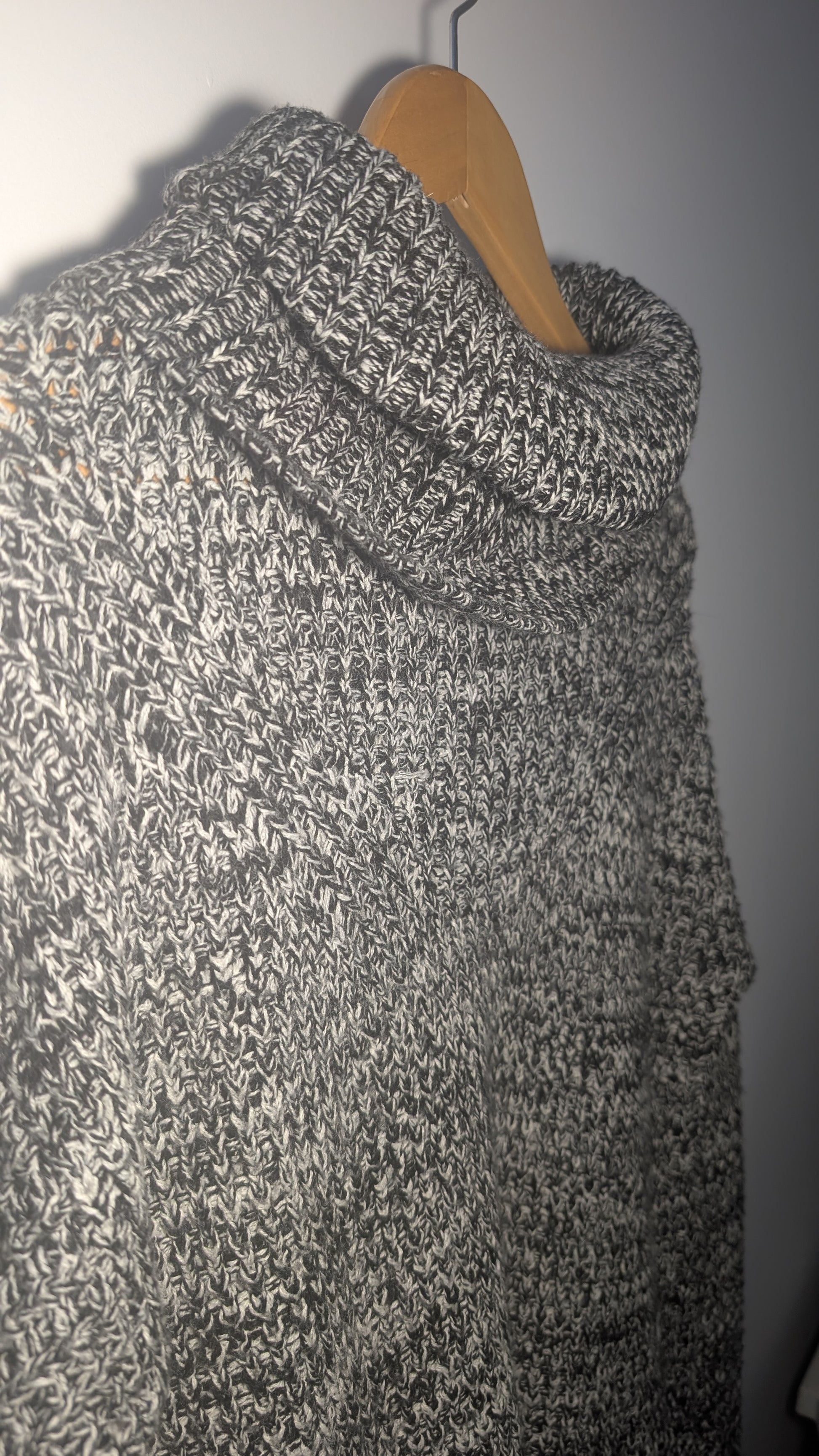 Tricot ample à col roulé en laine, avec des mailles fines.