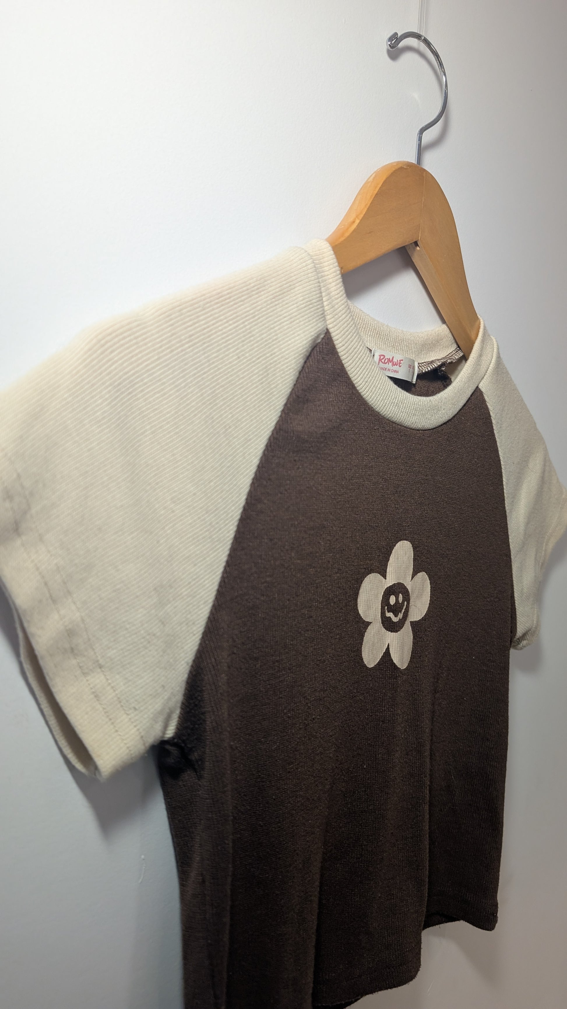 T-shirt court brun et crême